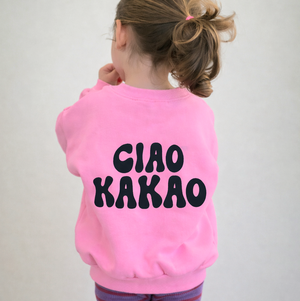 Made for cool kids! Lässiger oversize Schnitt mit Ciao Kakao Rückenprint. Innen ist der Pullover butterweich und dicke, kuschelige Baumwolle.